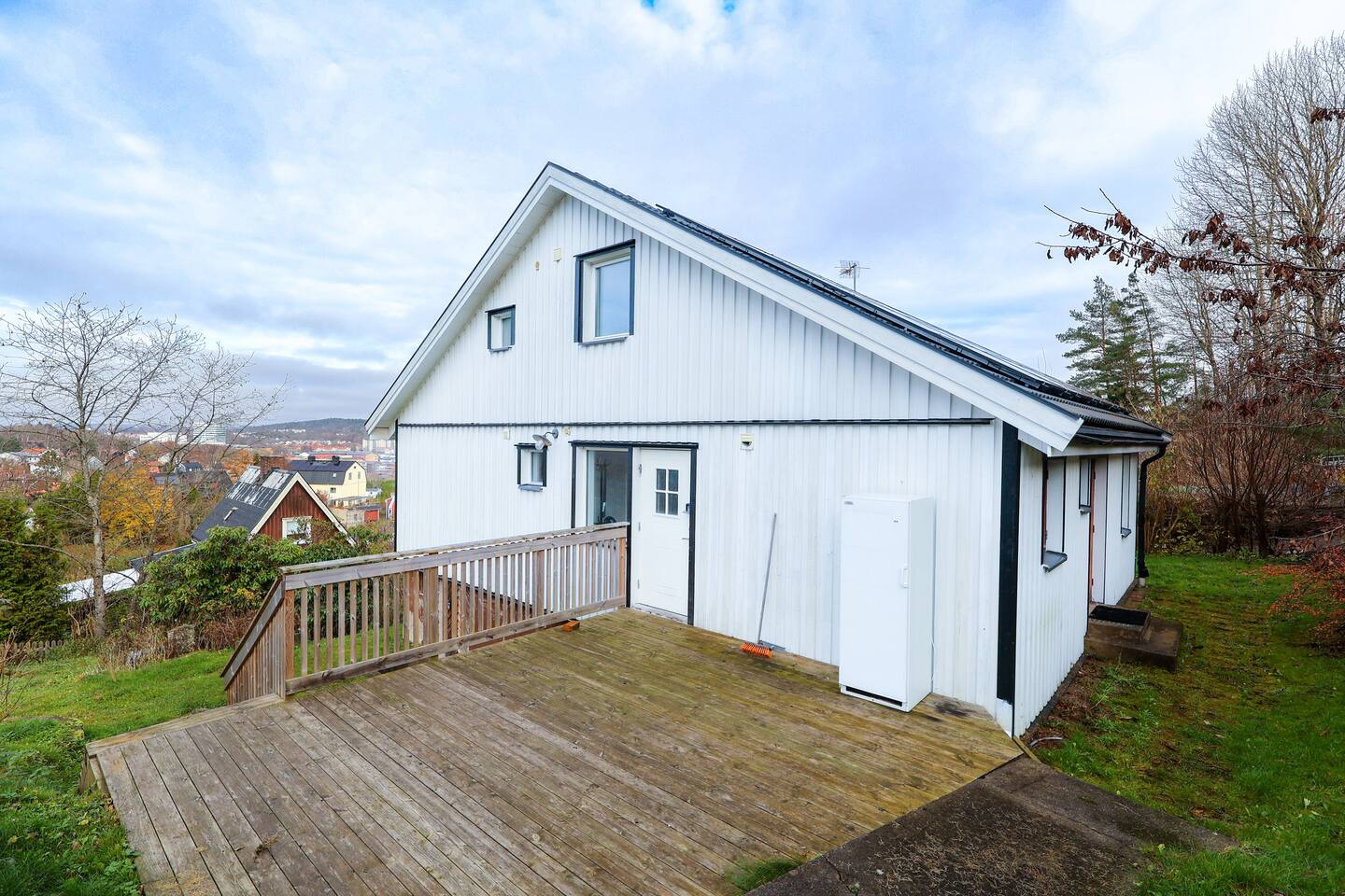 ★ Rymligt Boende i Krokslätt - Perfekt för Större Grupper och Arbetsresor i Göteborg ★ Välkommen till ett praktiskt och välplanerat boende i tre våningar, beläget i det lugna området Krokslätt i Göteborg. Denna fastighet är idealisk för större grupper, familjer eller arbetsresenärer som söker ett funktionellt boende med tillgång till alla bekvämligheter. Fastigheten erbjuder fyra kök och fyra badrum, vilket ger flexibilitet och utrymme – som att ha fyra lägenheter i ett stort hem. ★ Utrymmet ★ Boendet är fördelat över tre våningar, där våningen längst ner har en separat ingång. Med rymliga gemensamma utrymmen och gott om faciliteter är detta en utmärkt lösning för grupper som värdesätter flexibilitet och komfort. ✔ Vardagsrum med stor soffa och TV utrustad med Chromecast för underhållning ✔ 8 sovrum fördelade för att erbjuda gott om plats och avskildhet ★ Sovrum ★ Alla sovrum är bekvämt inredda: ✔ Sovrum 1-7: Varje sovrum har två enkelsängar (90 cm) ✔ Sovrum 8: Ett sovrum har en enkelsäng, totalt 15 sängar i hela fastigheten ★ Kök ★ Boendet har fyra fullt utrustade kök – ett på varje våningsplan – vilket ger flexibilitet för matlagning och måltider även för större grupper. ★ Badrum ★ Boendet har fyra badrum, ett på varje våningsplan, samtliga utrustade med dusch för att ge komfort och bekvämlighet för flera gäster. ✔ Badrum 1-4: Varje badrum inkluderar en dusch och nödvändiga faciliteter, vilket ger smidig tillgång även för stora grupper ★ Ytterligare Bekvämligheter ★ Fastigheten erbjuder även: ✔ Tvättmaskin och torktumlare, praktiskt för längre vistelser ✔ Gratis Wi-Fi och parkering på plats för samtliga gäster ✔ Sängkläder och handdukar ingår, vilket gör det enkelt att komma igång med vistelsen ★ Området Krokslätt ★ Boendet ligger i ett lugnt villaområde nära Safjället, ett naturskönt område med promenadstigar och motionsspår – perfekt för avkoppling i naturen. Samtidigt ligger Göteborgs centrum bara en kort resa bort, vilket gör det enkelt att nå stadens alla bekvämligheter. Bekvämligheter som ingår: ✔ Gratis Wi-Fi ✔ Gratis parkering ✔ Sängkläder, handdukar och köksbasvaror Detta boende är ett utmärkt val för stora grupper och arbetsresenärer som värdesätter flexibilitet och bekvämlighet. Med fyra kök och fyra badrum erbjuder det utrymme och funktionalitet, där våningen längst ner har en separat ingång för extra integritet och flexibilitet.