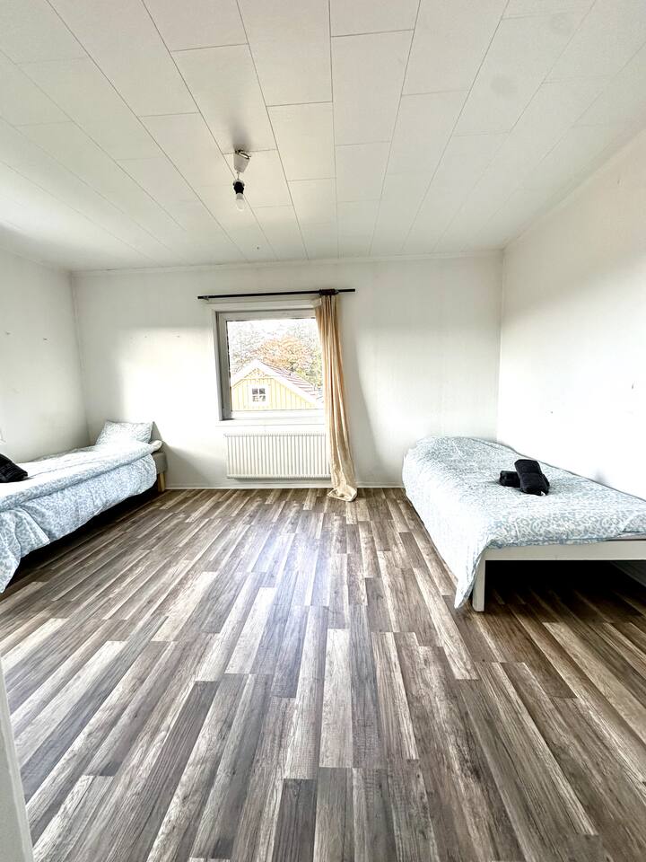 🛏️ 7 Bedrooms • 10 Beds • Configurable Setup ✔ 7 separate bedrooms ✔ 10 beds (real beds, no sharing required) ✔ Extra beds available on request ✔ Linens, towels & blackout curtains included ✔ Quiet layout – easy to rest between shifts ✔ Storage in all rooms 🍽️ Kitchen & Dining ✔ Full kitchen (no dishwasher) ✔ Oven, stove, microwave ✔ Fridge, freezer, kettle, toaster, coffee maker ✔ Pots, pans, cooking basics (oil, salt, pepper) ✔ Plates, mugs, glasses, cutlery ✔ Cleaning products included ✔ Dining area integrated with living space 🚿 2 Bathrooms + Laundry ✔ Two bathrooms with shower, toilet, sink ✔ Washer and dryer ✔ Shampoo, conditioner, body wash ✔ Hot water 24/7 ✔ Iron & drying rack 🛋️ Shared Space & Extras ✔ Sofa and lounge area ✔ Smart TV ✔ Dining table ✔ Heating in all rooms ✔ WiFi throughout the house ✔ Self check-in available 🚗 Free Parking & Location ✔ Free parking for multiple vehicles ✔ Quiet street with easy access for vans ✔ 10 minutes to Volvo ✔ Groceries and public transport nearby ✔ Located in calm Säve near Torslanda ✅ Included ✔ WiFi ✔ Bed linen & towels ✔ Full kitchen ✔ 2 bathrooms ✔ Washer & dryer ✔ Free parking ✔ Long-term stays allowed (28+ nights) ✔ Invoice for businesses ✔ Flexible furniture & layout ✔ 24/7 host support 💬 Summary With 7 bedrooms, 10 beds and 2 full bathrooms, this house is ideal for work teams near Volvo. It’s clean, spacious, and fully equipped for longer stays – with all the essentials included and layout adapted for your team. 📩 Message us with your crew’s size – we’ll tailor the setup for you.