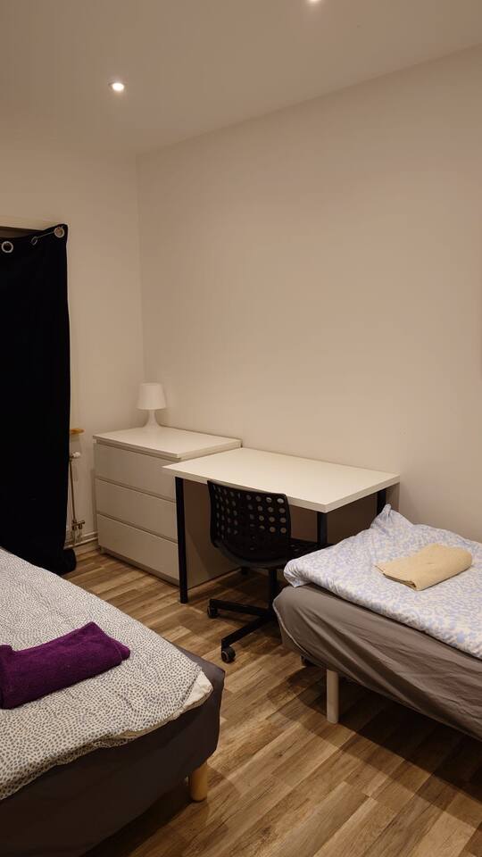 🛏️ Boendet Denna funktionella bostad erbjuder gott om utrymme för både kortare och längre vistelser: 4 sovrum 4–8 sängplatser (flexibel sovlösning för team) Fräscht badrum Rymligt vardagsrum med soffgrupp och TV Fullt utrustat kök med spis, ugn, kyl/frys, mikrovågsugn och köksutrustning för självhushåll Boendet är anpassat för längre vistelser med fokus på komfort, funktion och enkel vardag. 🚗 Bekvämligheter ✔ Gratis parkering i direkt anslutning ✔ Wi-Fi ✔ TV ✔ Tvättmöjligheter ✔ Nära till mataffärer och service ✔ Smidig tillgång till kollektivtrafik 👷 Perfekt för företagsboende Boendet passar utmärkt för: Bygg- och industripersonal Projektteam Konsulter och entreprenörer Ett lugnt, rent och praktiskt boende där teamet kan koppla av efter arbetsdagen. 📍 Läge Angered Nära Volvo Ca 15–20 minuter till centrala Göteborg med bil 🧹 Redo för inflytt ✔ Nybäddade sängar ✔ Rena handdukar ✔ Ett fräscht och inflyttningsklart hem ⭐ Andra saker att notera Parkering & Wi-Fi Parkering finns precis utanför bostaden, vilket gör det enkelt för arbetsfordon och pendling. Wi-Fi ingår så att ni alltid kan hålla kontakten. ✔ Parkering precis utanför ✔ Gratis Wi-Fi
