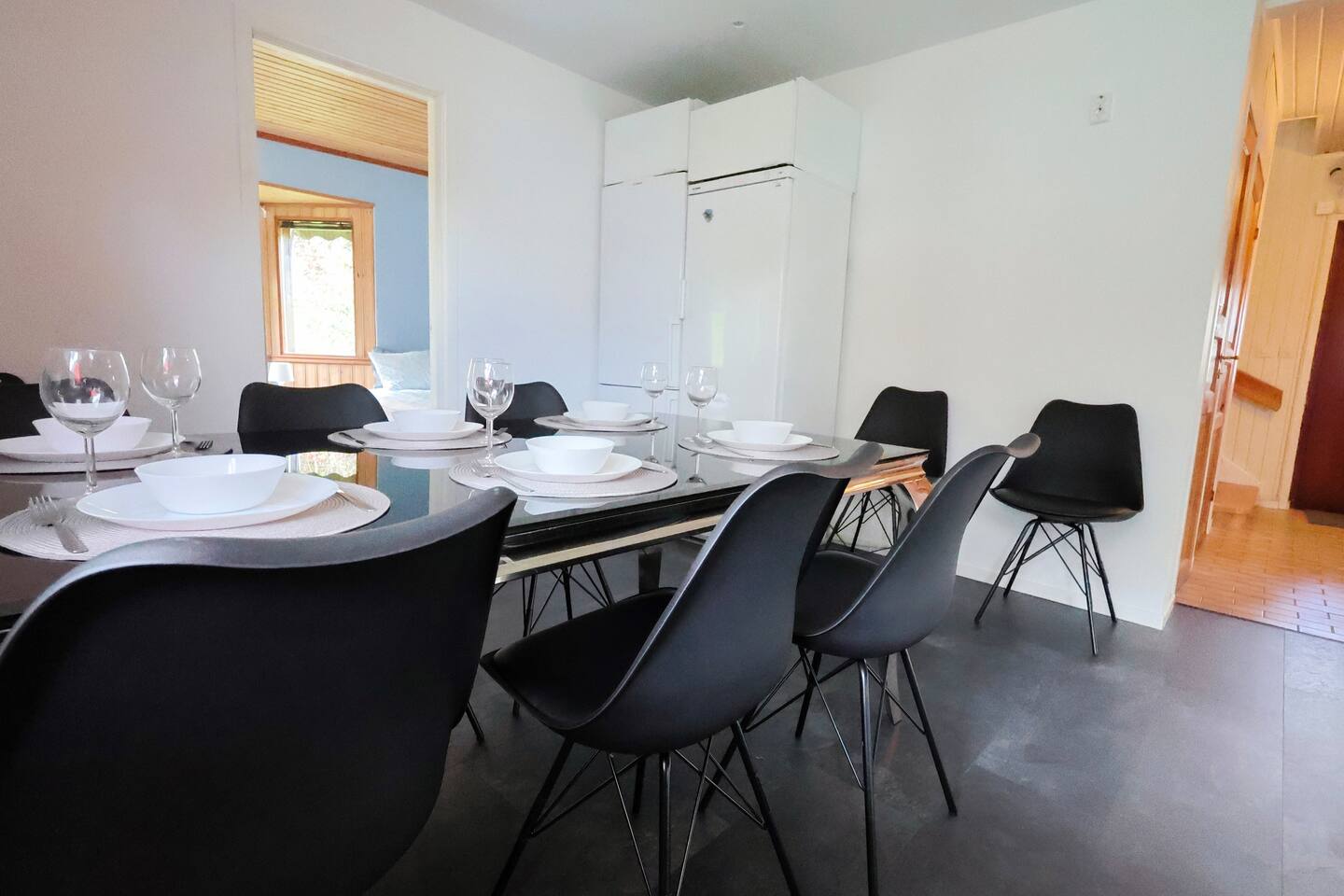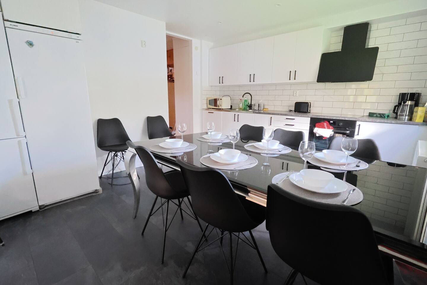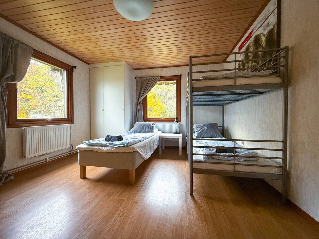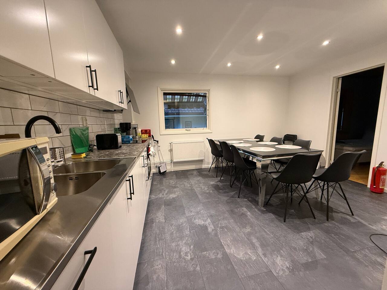 ποΈ 5 Bedrooms β’ Flexible Layout β’ Sleeps 8β12 β Bedroom 1: Two single beds β Bedroom 2: Two single beds β Bedroom 3: One single bed (extra bed optional) β Bedroom 4: One single bed (extra bed optional) β Bedroom 5: One single bed + bunk bed for 2 β Basic but comfortable furniture β Linens, blackout curtains & towels included β Quiet rooms with storage β Furniture can be rearranged for larger teams ποΈ Living Room & Workspace β Large sofa + Chromecast TV β Dining table for 8β12 guests β Dedicated workspace with 2 desks β Spacious entrance & open layout β Smart setup for both rest and productivity π½οΈ Kitchen & Dining β Fully equipped kitchen β Stove, oven, microwave, fridge/freezer β Kettle, coffee maker, toaster β Pots, pans, cutlery, glasses, mugs β Oil, salt, pepper & cleaning supplies β Integrated dining area πΏ Bathrooms + Laundry β 2 bathrooms with showers and toilets β Small washing machine β Shampoo, shower gel & conditioner β Hot water 24/7 β Hairdryer & iron on request π Parking & Connectivity β Free parking right outside β Quiet street with space for vans β Fast WiFi throughout β Self check-in available β Grocery stores and public transit nearby β Included in Your Stay β WiFi β Heating β Trash collection β Bed linen & towels β Washer β Full kitchen β Flexible furnishing/setup β Invoice available β 24/7 support β Long-term stays allowed π¬ Summary A functional 5-bedroom home for work crews or larger groups visiting Angered/Gothenburg. Whether you're staying for a project or rotating workers β the space, flexibility and comfort make this a solid long-term choice. π© Message us with your group size β weβll adapt the setup for you!