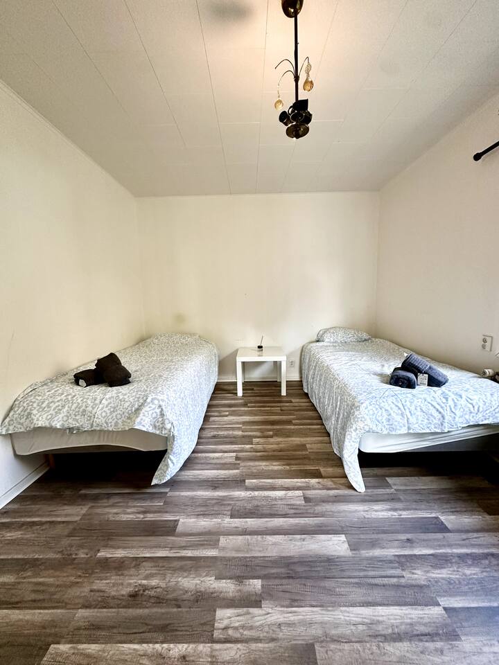 🛏️ 10 Bedrooms • 16 Beds – Built for Teams ✔10 private bedrooms = no room sharing ✔ 16 individual beds – ideal for large teams ✔ Blackout curtains for sleep ✔ Extra pillows, linens, towels & storage ✔ Freshly prepared for long-term comfort 🍳 Big Kitchen for Big Groups ✔ Fully equipped kitchen – cook for many ✔ Oven, stove, microwave ✔ Coffee maker, toaster, kettle ✔ Dishwasher ✔ Cooking oil, salt, pepper ✔ Pots, pans, plates, cutlery, glasses, mugs ✔ Large dining area for shared meals ✔ Cleaning products included 🚿 2 Full Bathrooms + Laundry ✔ Two bathrooms with showers, toilets & sinks ✔ Hot water always available ✔ Shampoo, conditioner & body wash ✔ Towels, hairdryer, iron, drying rack ✔ Washer & dryer – ideal for long stays ✔ Weekly cleaning available (optional) 💼 Ready for Work & Rest ✔ Fast & stable WiFi in entire home ✔ Dedicated work desks with comfortable chairs ✔ Smart TV in the living room ✔ Heating throughout ✔ Self check-in ✔ Luggage drop-off allowed 🚗 Parking & Outdoor Access ✔ Free parking just outside the property ✔ Quiet street – safe for vans and team vehicles ✔ Private entrance ✔ Backyard with grass area ✔ Outdoor seating area for coffee or evening break 📍 Prime for Productivity – Calm Yet Connected ✔ Located in Olofstorp – close to Volvo & industry ✔ 25 mins to central Gothenburg ✔ 5–10 mins to groceries, pharmacy, gas station ✔ Close to nature for peace after long workdays ✔ Public transport nearby ✅ What’s Included ✔ High-speed WiFi ✔ Bed linen & towels ✔ Full kitchen ✔ Washer & dryer ✔ Cleaning products ✔ Heating ✔ Free parking ✔ Long-term stays welcome (28+ nights) ✔ Invoice available for business bookings ✔ 24/7 host support 💬 Summary This 8-bedroom home is a rare gem for large crews needing a clean, organized and cost-effective stay. With 16 beds, 2 bathrooms, full amenities and parking – it’s ready to host your team, your project or your rotation schedule with zero hassle. 📩 Message us now to reserve or ask any questions – we’re here to help!